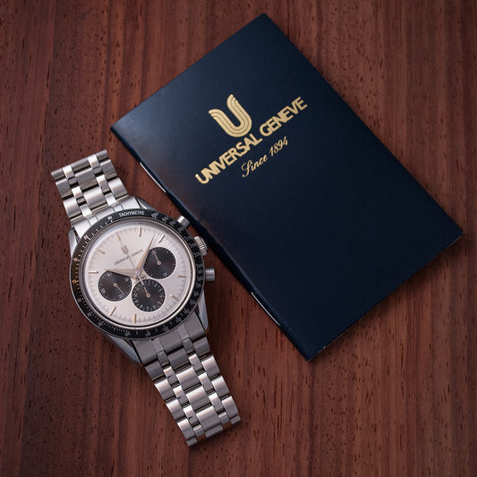 Universal Genève, Compax, Chronograph, Ref. 884.475, Full-Set, Handaufzug, Kaliber UG 84, originales Stahlband