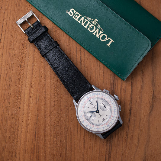 Longines Chronograph «Jumbo», Ref. 5041, Kaliber 13ZN, Flyback, 1946, Edelstahl, Handaufzug, Archivauzug von Longines, Werk restauriert, Garantie bis 12/2024
