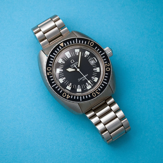Omega Seamaster 120, Deep Blue, Ref. 166.073, Edelstahl, Stahllünette mit Bakeliteinsatz, Omega-Stahlband