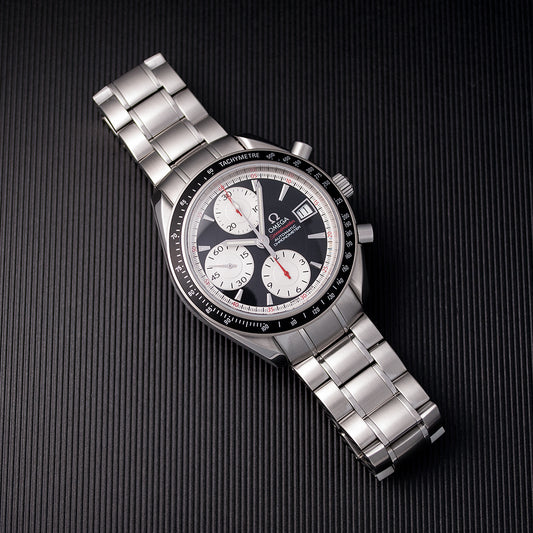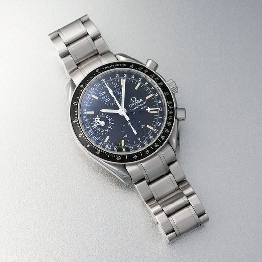 Omega Speedmaster, Automatic, Chronometer, Date, Ref. 178.0055, ungetragen, Omega-Stahlband, mit Reisebox, ohne Papiere