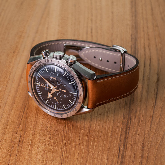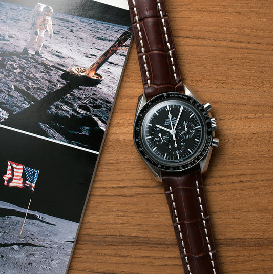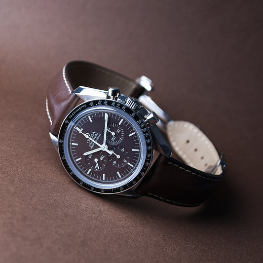 Omega Speedmaster Professional, «Moonwatch», 1975, Kaliber 861, braunes Lederband
