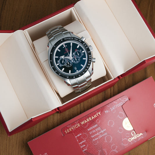 Omega Speedmaster, olympische Kollektion, Ref. 321.30.44.52.01.001, Full-Set, 2008, Automat, Co-Axial, Chronograph, Chronometer, mit Werksrevision